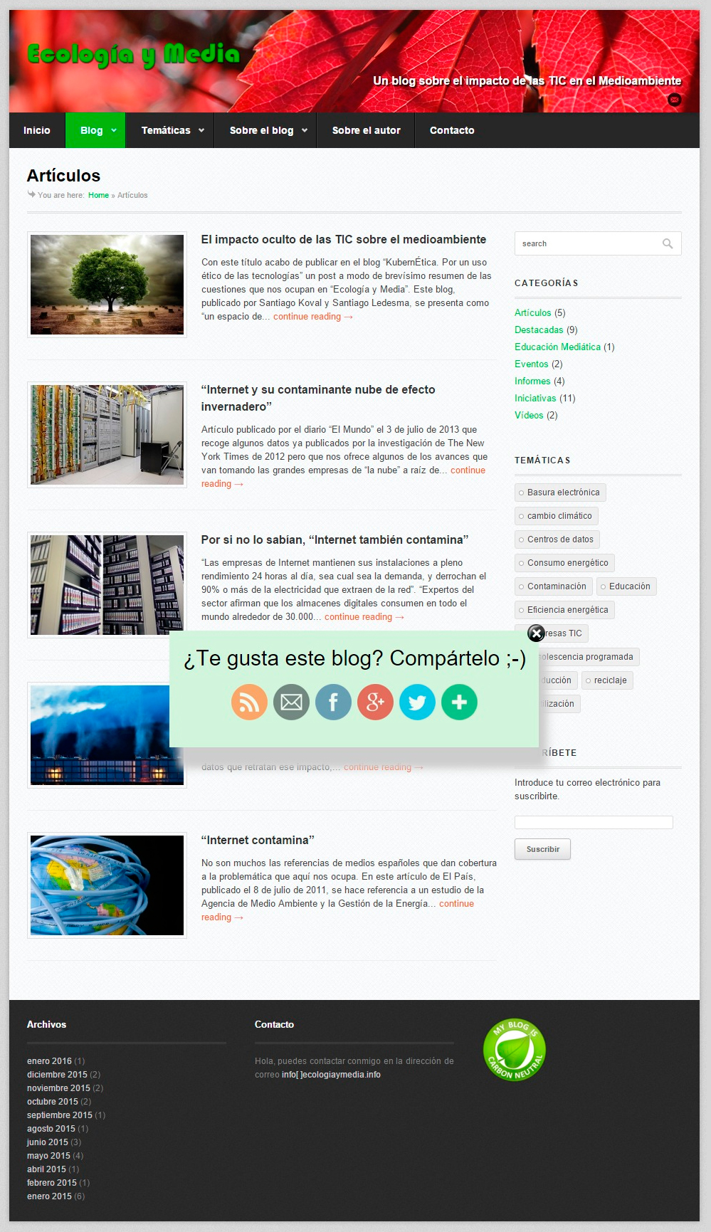 Realizado en WordPress, este blog contiene todas las herramientas de divulgación utilizada en los blog más populares.