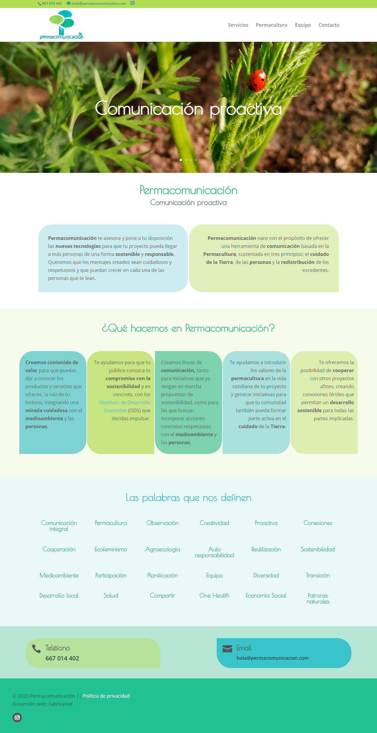 Página web corporativa, dedicada a la ecología, permacultura y sostenibilidad.